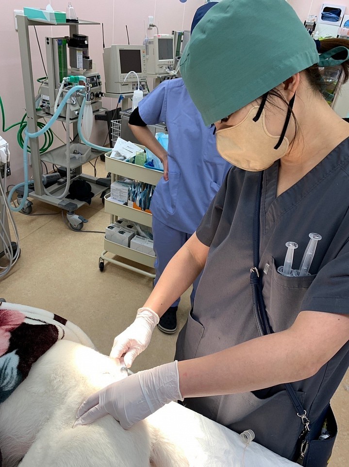 私たちは、獣医師・看護師から結成されている麻酔に特化したグループです!動物の高齢化が進む現在、犬で16歳・17歳、猫では20歳近くでも麻酔をかける機会は増えてきています。手術による治療も数年前に比べてより進歩してきており、それに従って麻酔の技術もより特化した丁寧かつ繊細な麻酔が必要になってきています。私たちはそんな質の高い医療を目指して日々勉強し、考察し、腕を磨いています。動物達の命、そして生活の質がより良いものとなるように今日も全力を尽くしています!